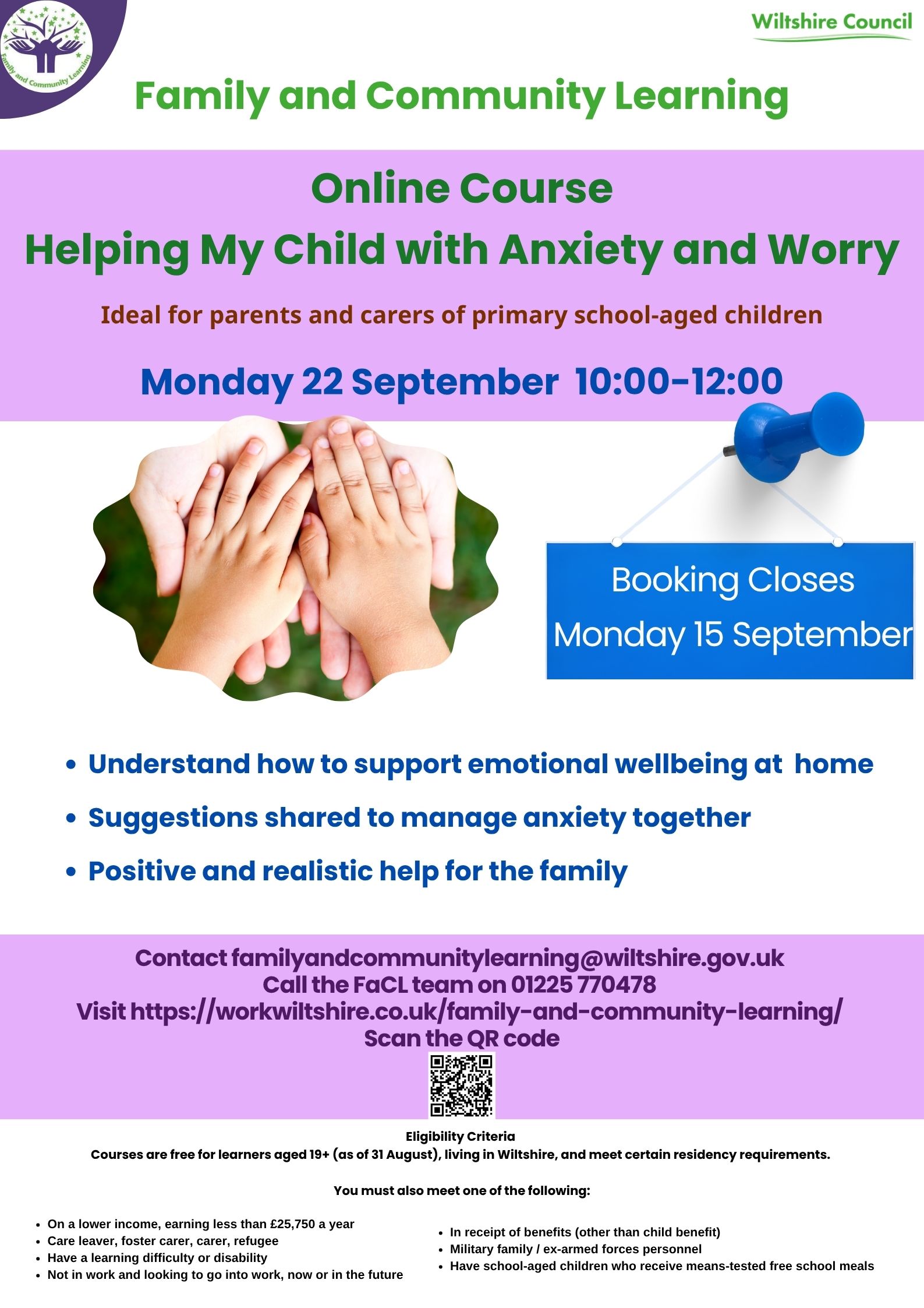 Contact familyandcommunitylearning@wiltshire.gov.uk Call the FaCL team on 01225 770478 Visit https://workwiltshire.co.uk/family-and-community-learning/ Scan the QR code
